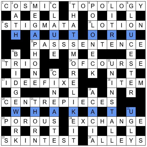 I really enjoyed the puzzle. I managed to solve it all, although I couldn’t pass SKIN TEST . I was very held up by thinking it was SKIN DEEP, for ‘least’ and a comfortable assessment, but I was never very happy. Eventually the long middle clue resolved itself.