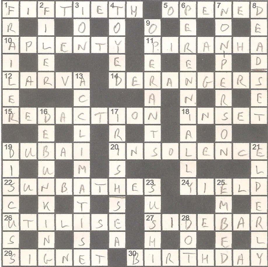 | 1 | FIFTIETH | Golden pants fit thief (8) (FIT THIEF)* AInd: pants. First read. First solved. Whose fiftieth is it? |