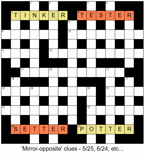 I filled in a couple of across answers quickly, before I noticed the mirroring of clues but, luckily, I got them in the right places!