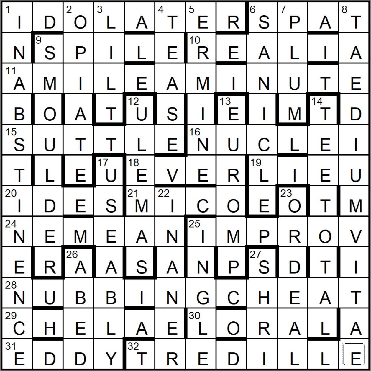 As is normal for crosswords of this type, we have a mix of everyday and more obscure words. One difference I notice from Azed is the lack of quirky Scottish words. Will we only get those once a month now?