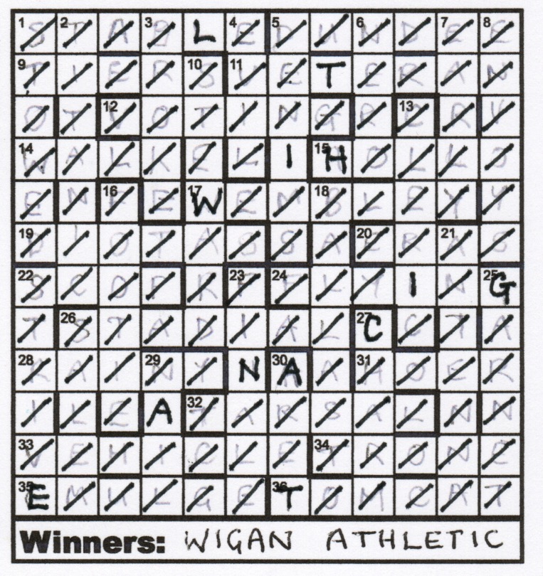 So the grid should be empty and WIGAN ATHLETIC are the winners – we move them to the winners’ area.