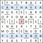 The message was taking shape and the columns in grid 1 appeared to form real words, both of which helped to rule in (or out) some of the misprints & corrections in the as yet unsolved clues, and slotting in the new answers created quite a strong feedback loop. When the grids were nearly complete I had a go at the two unclued rows and arrived at CAN I HAVE A and PLEASE BOB, leaving P for the central cell, all of which led me to the game show Blockbusters, which I’ve never seen and only vaguely heard of. As I now know, it’s the source of the pun “Can I have a ‘P’ please, Bob?”, the original host of the show being Bob Holness.