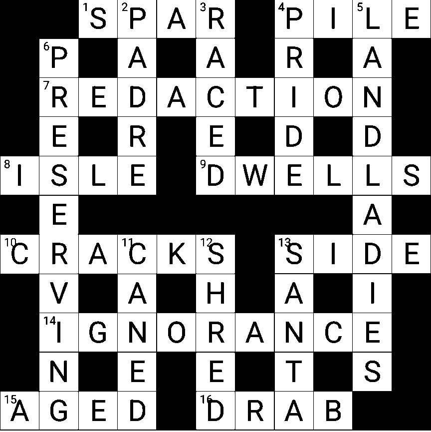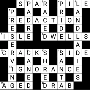 So saying I ticked three clues: SPAR, ISLE, REDACTION