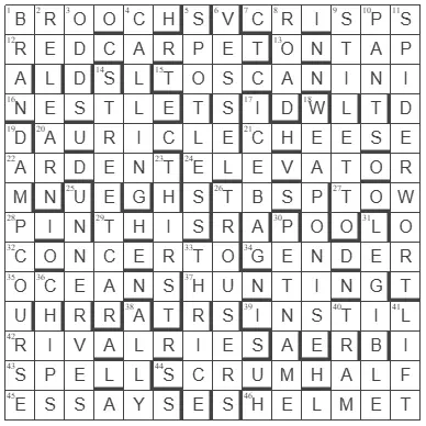 This is the first Spectator puzzle to be blogged on this site – and, not being a regular reader, it’s the first Spectator crossword I’ve attempted. Luckily it proved to be quite gentle – the setter, Fire, has given us quite an easy ride for our first dip in the water. The rubric tells us five pairs of unclued lights are similarly linked. These turn out to be pairs of whole solutions, with some lights missing, in which the English term is matched to the American – thus: