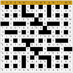 I was a university with Leo – he does remember me now, honestly – and there are points in this crossword where I was reminded of that time, hence one of the earworms.