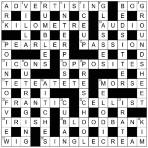 Thanks Deri for a pleasant crossword. I needed a word finder for PEARLER & OUTRAGING and the blog to understand WIG but all else fell into place nicely. Favourites included ICONS, SINGLE CREAM, & ICE UP. Thanks Pierre for the blog.