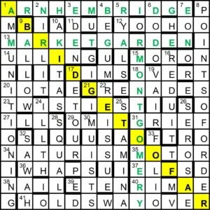 | 38a | NAIL | Pin down North American misfortune (4) | L |