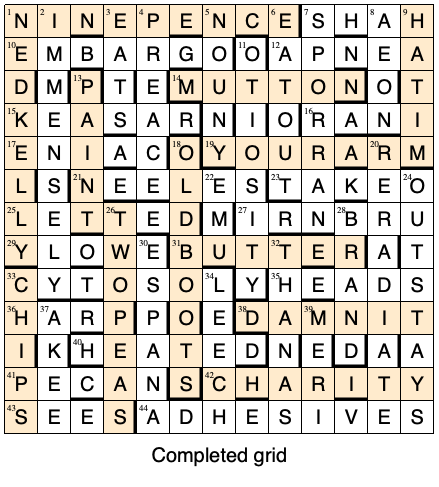 In the final grid below, the thematic entries are highlighted. In the parsings, the solutions to the 12 thematic clues are in BOLD GREEN text.