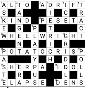 Wow as a complete beginner I was pleased that I could manage this! Lots of ‘sound-alikes ‘ some of which were very amusing, and I’m beginning to get a handle on charades at long last! I particularly liked the Spanglish in 17A. I enjoyed doing this crossword even though I had to struggle with one or two clues- then realised the jokes when I got them (e.g. 1D and 7A). Last week I wondered if I’d ever get the hang of regular cryptics but pleased to report that I managed half a normal cryptic this week, so this experiment is definitely working!! Therefore a special heartfelt thankyou to everyone creating and explaining these quick cryptics.