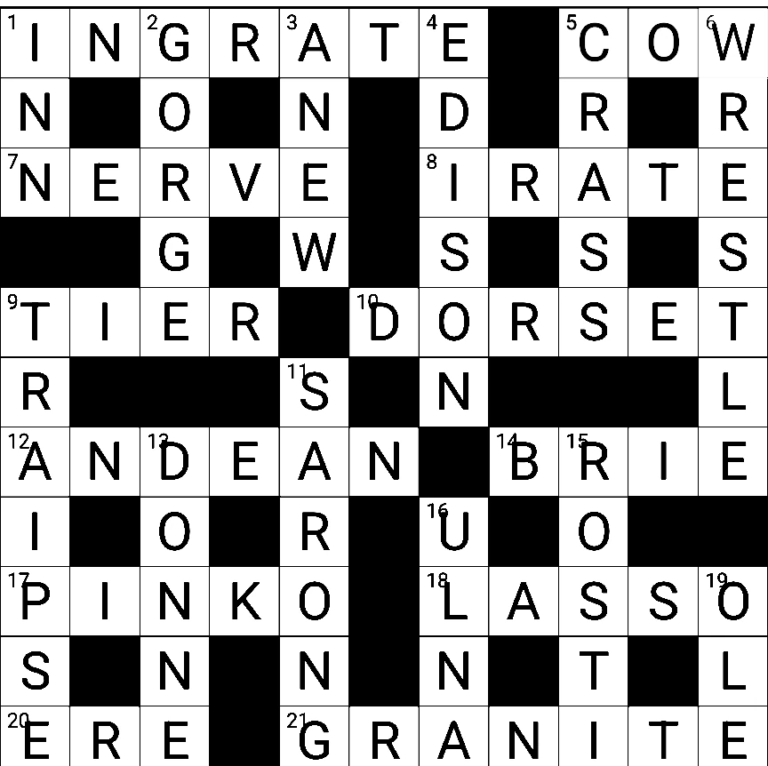 Parsinganagram of (GRATINÉ)* with an anagrind of “bananas”. The term comes from a type of rock, relatively harder because of igneous formation – but there’s a metaphorical cliche of describing the strong silent man as having a jaw made of this rock. |