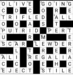 - CAD or clue as definition– where the whole clue gives the definition, sometimes called an &lit. These are rare.