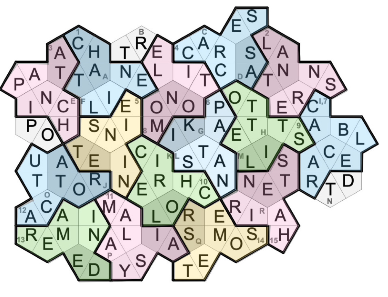 In the end, we found that we really didn’t need the anagrams of the cells that are not in any region or hexagon – but we checked them just in case!