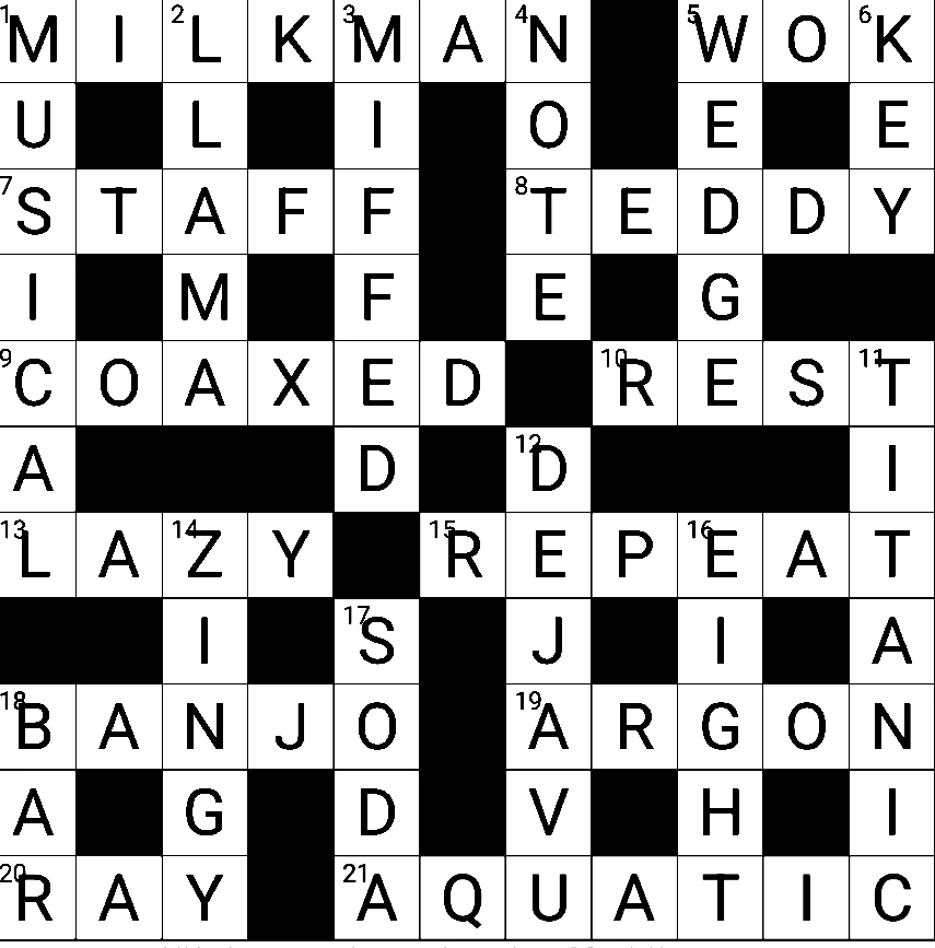 I enjoyed that. MILKMAN was tricky, and was my LOI, but I really liked miffed!