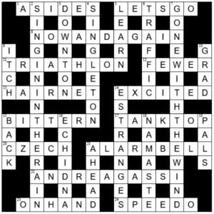 Thanks Everyman and Pierre. An enjoyable puzzle. Not sure about all trademark clues though, – SINGIN’ IN THE RAIN rhymes with NOW AND AGAIN but they’re not symmetrical as is usually the case.