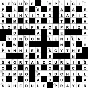 Pragmatically, the clue to 1A was clearly no harder than many of the others.  It’s just the way solving goes, and this puzzle was about average – somewhere between 6 and 10 left to get after the first pass, including, as usual, the 5 shorter lights in the top left.  Of those I suggest 2 down was the toughest – toughest just to read without thinking too much about the surface reading.  Very off putting.
