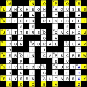 A satisfying puzzle with a very neatly worked out nina (which is highlighted in the grid at the end of this blog).