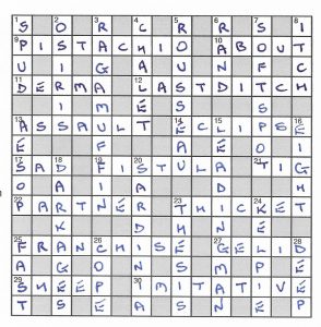 I got stuck with a couple and had to cheat a bit. I was sure there wasn’t a superhero called LEARING MAN but I had to check. And I’m annoyed about FISTULA. When I was a teenager I absolutely loved Isaac Asimov’s novelisation of the film Fantastic Voyage, a medical fistula played a part in the plot, a direct connection between a vein and an artery caused by an injury in that case.